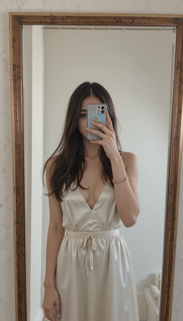 Đây là trend “bất tử” trên TikTok và Pinterest. Chỉ cần một tấm gương, chiếc điện thoại và ánh sáng nhẹ, bạn đã có thể tạo nên bức ảnh nghệ thuật, vừa giản dị vừa sang. Các kiểu ảnh này được ưa chuộng vì giữ trọn sự riêng tư nhưng vẫn khoe được outfit và phong cách sống.