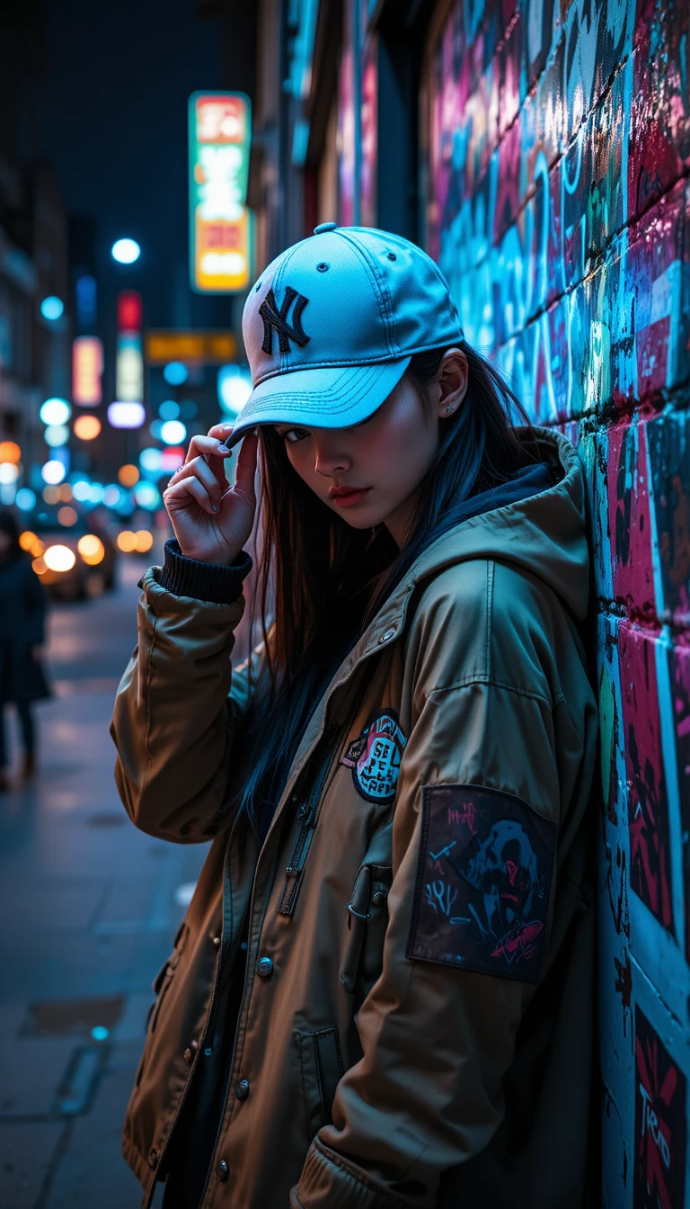Phong cách đường phố mang hơi hướng hiện đại, tự do và bí ẩn. Một cô gái đi giữa phố, che mặt bằng điện thoại hoặc nón lưỡi trai, ánh đèn phản chiếu lung linh – chính là biểu tượng của sự “cool” và khác biệt.