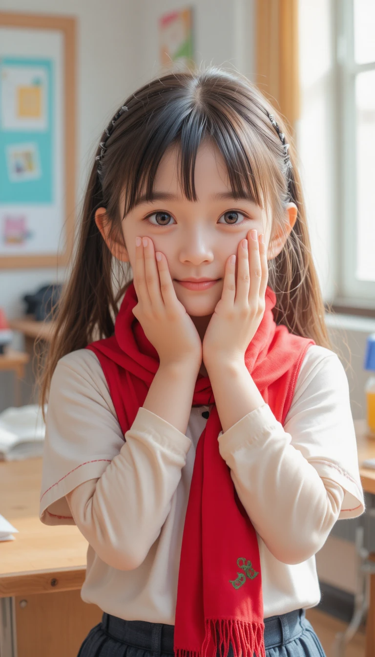 Ảnh Gái Xinh Che Mặt Học Sinh (K13, Lớp 5, Áo Dài)
